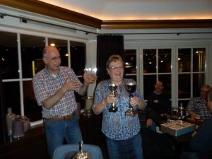Derde is geworden: Gerrit Jimmink met een gemiddelde van 611 punten, tweede Jan Willem Schorfhaar met 619 punten en de winnaar is Marianne Postel met 632 punten. Marianne mocht de grote beker in ontvangst nemen, evenals de Plusmarktbokaal, die zij net voor kerst had gewonnen.
