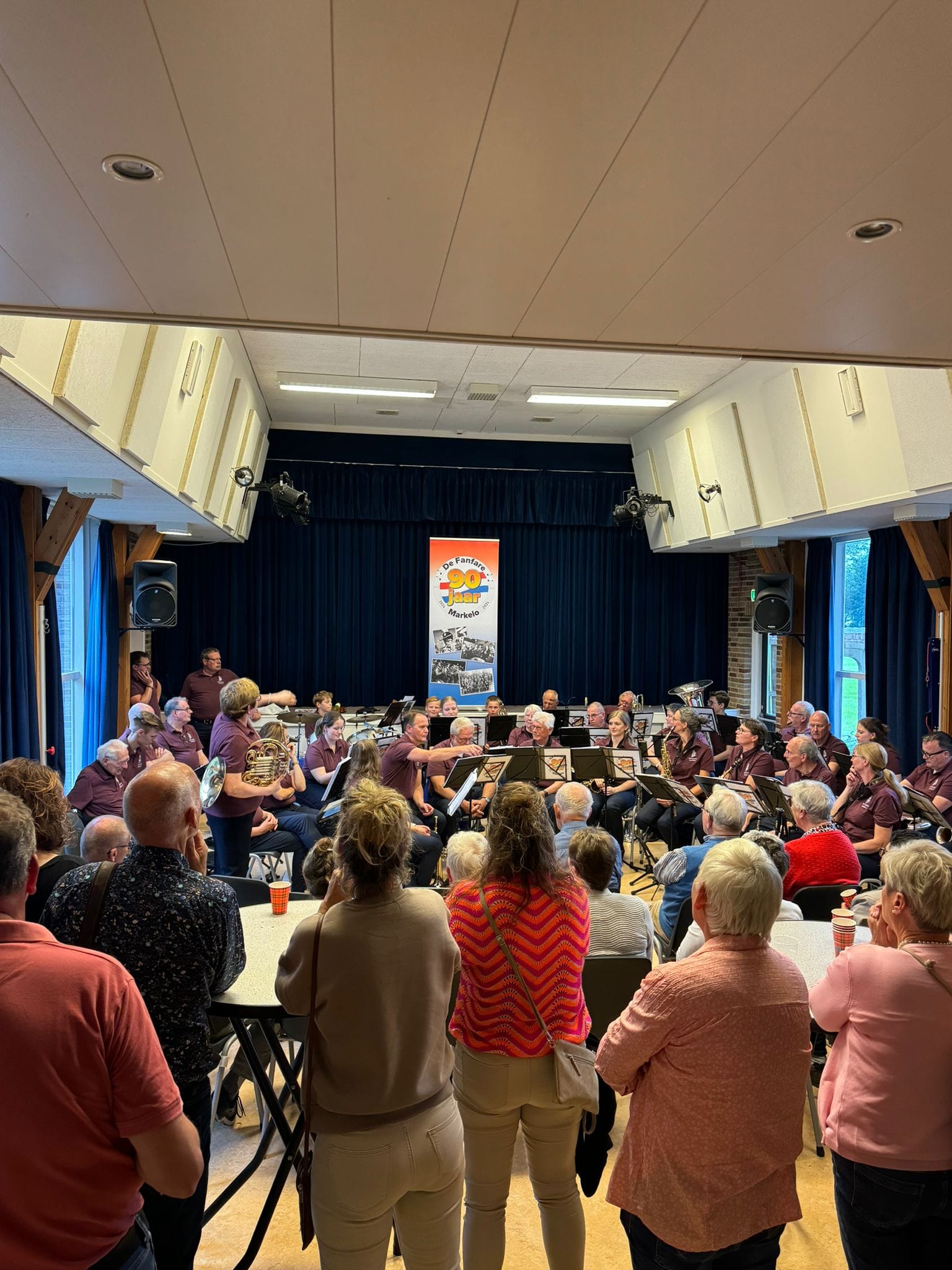 De fanfare bestaat dit jaar 90 jaar en geeft daarom een reeks zomerconcerten. Gisteravond stond het Brook op de planning. Gezien de weersomstandigheden vond het concert plaats in de zaal. Er was een mooie opkomt, de zaal was goed gevuld. Een gezellige avond die we gezellig afsloten onder her genot van een drankje.